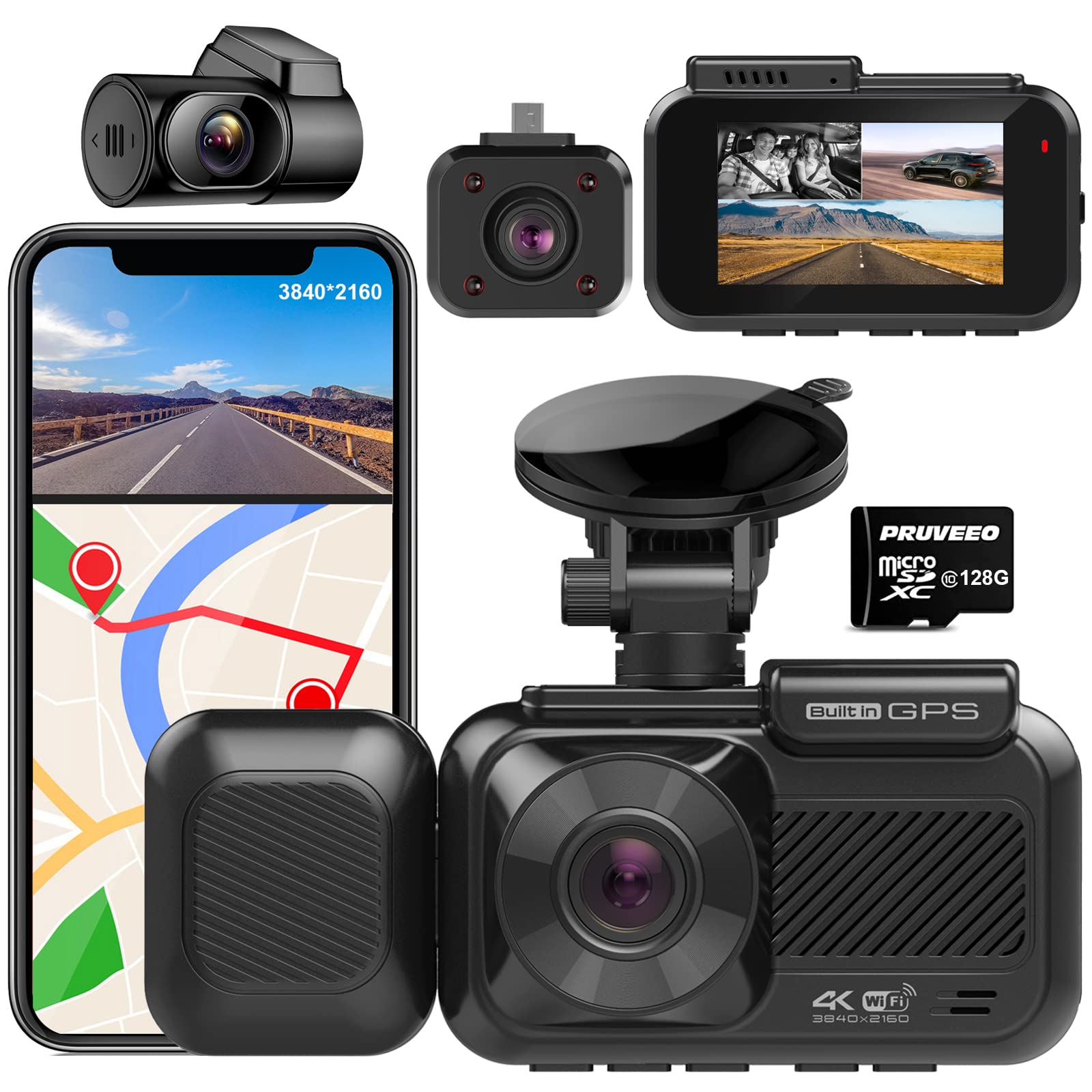 Amazon Com Pruveeo C3 4k Dash Cam 3 Channel Front And Rear Inside Triple Camera Free 128gb Card Wi Fi Gps Parking Monitoring G Sensor Super Capacitor Support 512gb Max Electronics